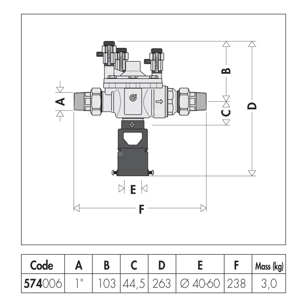 Przed izolatorem przepływów zwrotnych należy zamontować filtr siatkowy serii 577.
