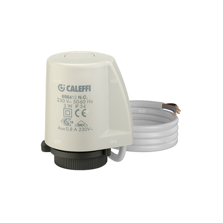 Siłownik termoelektryczny o niskim poborze prądu. Z mikroprzełącznikiem pomocniczym Montaż przy użyciu szybkozłącza, z przyłączem wciskowym. Normalnie zamknięty. Dla zaworów z serii 338, 339, 401, 402, 425, 426, 421, 422, 230, 231, 232, 233, 234, 237, 220, 221, 222, 223, 224, 225, 226, 227, 455 i 456. Ze wskaźnikiem pozycji otwarcia. Zakres temperatury otoczenia: 0–50 °C. Zasilanie elektryczne: 24 V (AC) / (DC). Pobór mocy: 3 W. Stopień ochrony: IP 54. Długość przewodu zasilająego: 0,8 m. Styk mikroprzełącznika pomocniczego (230 V): 0,8 A. Prąd rozruchowy: ≤ 250 mA ((230 V)).