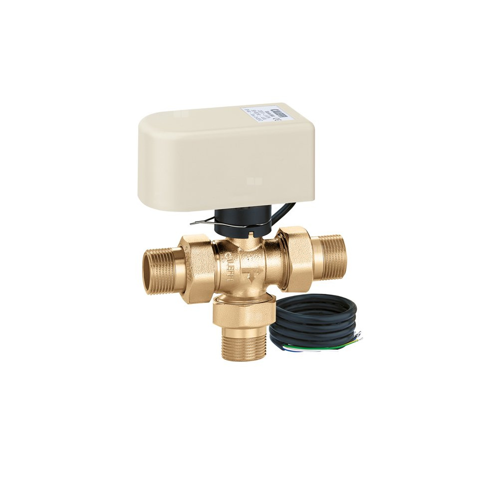 Trójdrożny kulowy zawór strefowy z napędem, wersja z obejściem 1"-230V