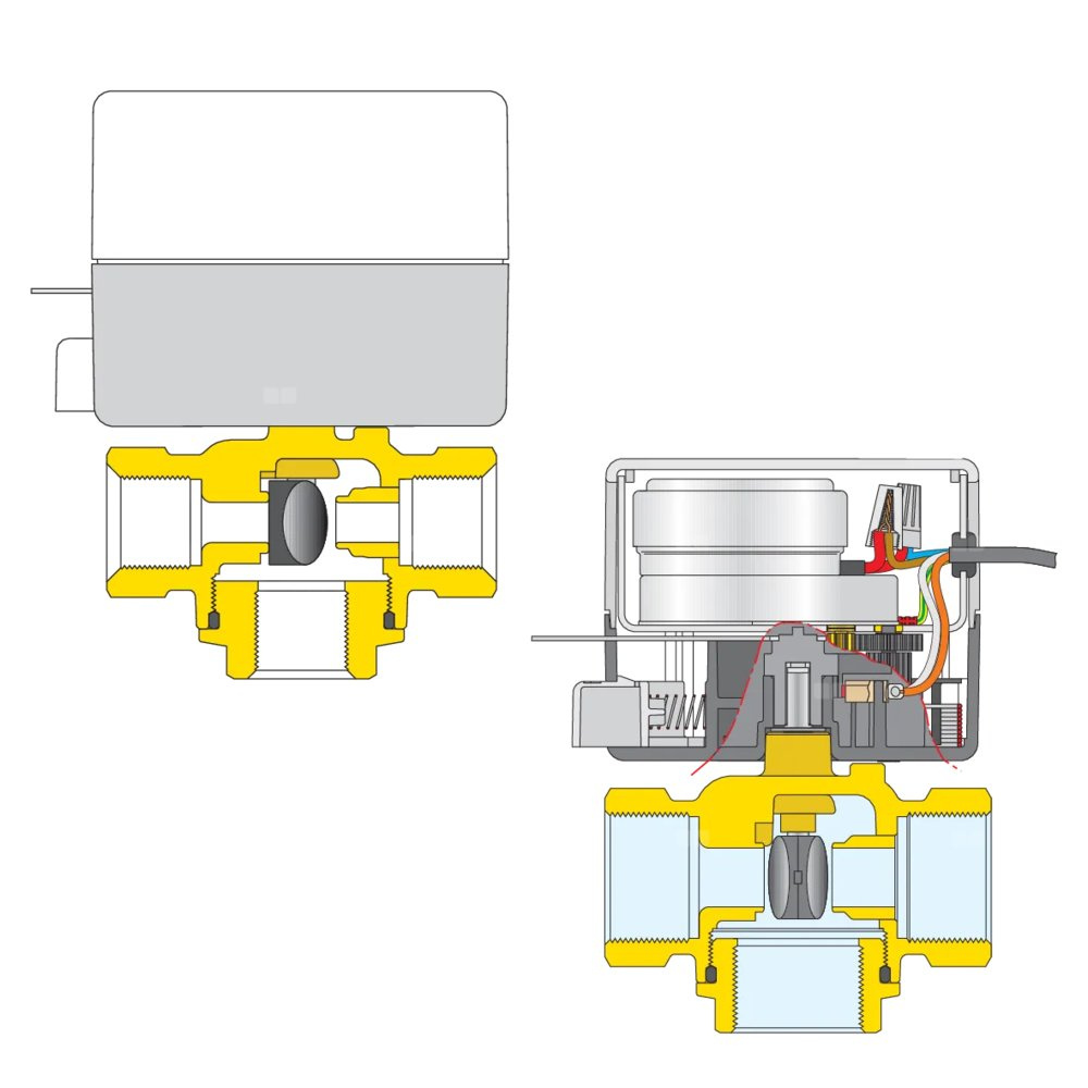 Trójdrożny zawór strefowy z napędem. Z mikroprzełącznikiem pomocniczym 3/4" 4,5