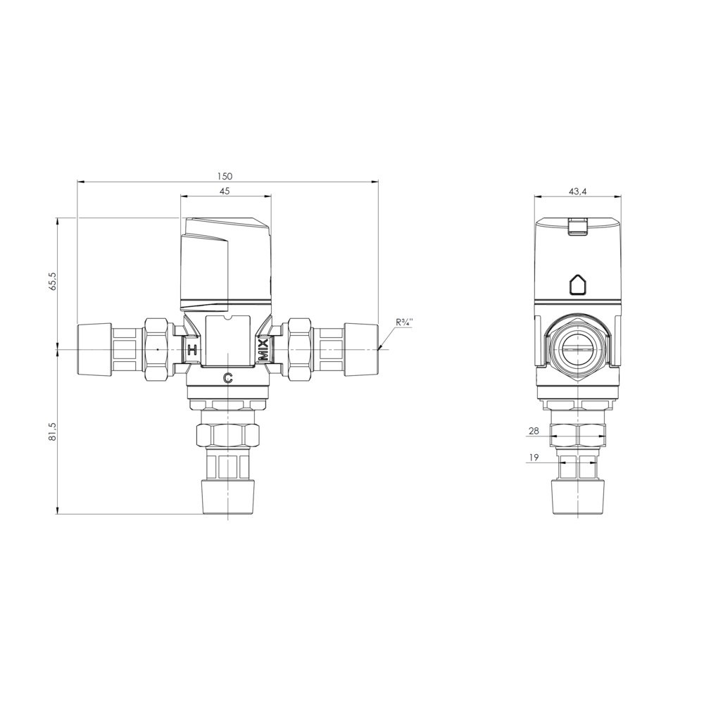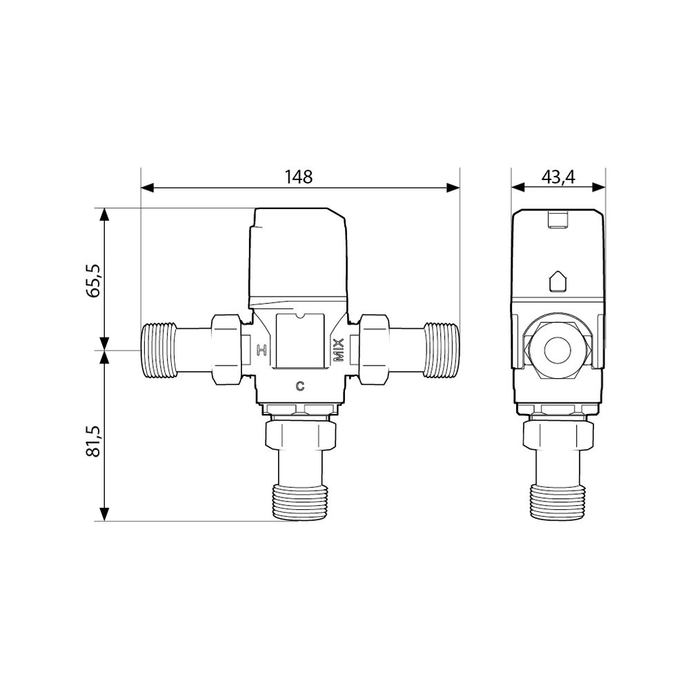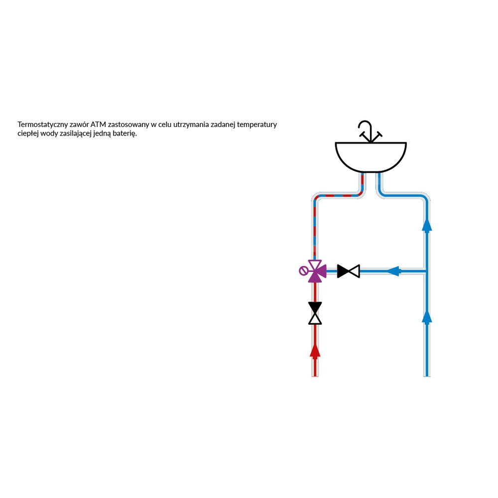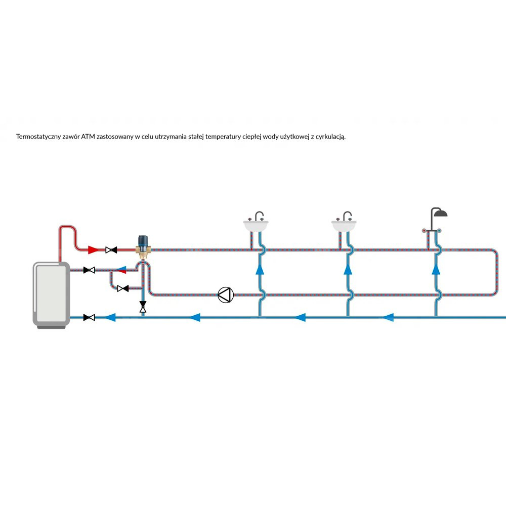 Zawór regulacyjny termostatyczny do wody ciepłej AFRISO ATM 341 ze śrubunkami mosiądz GZ 3/4'', DN 15, zakres temp. 20-43'C, Kvs 1.6 m3/h, maksymalna temperatura 90'C, maksymane ciśnienie 10 bar