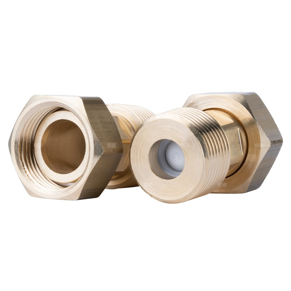 W zestawie znajduje się komplet śrubunków z wbudowanymi zaworami zwrotnymi, który ułatwia montaż i demontaż zaworu ATM oraz zapobiega przepływom zwrotnym w instalacji.