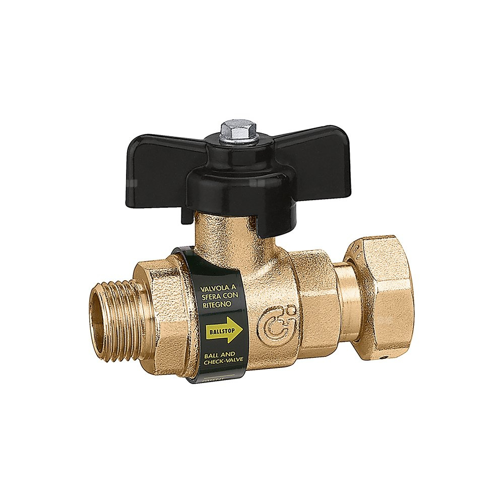 BALLSTOP - Zawór kulowy z wbudowanym zaworem zwrotnym, przyłącze z gwintem zewnętrznym, nakrętka zabezpieczona przed manipulacją