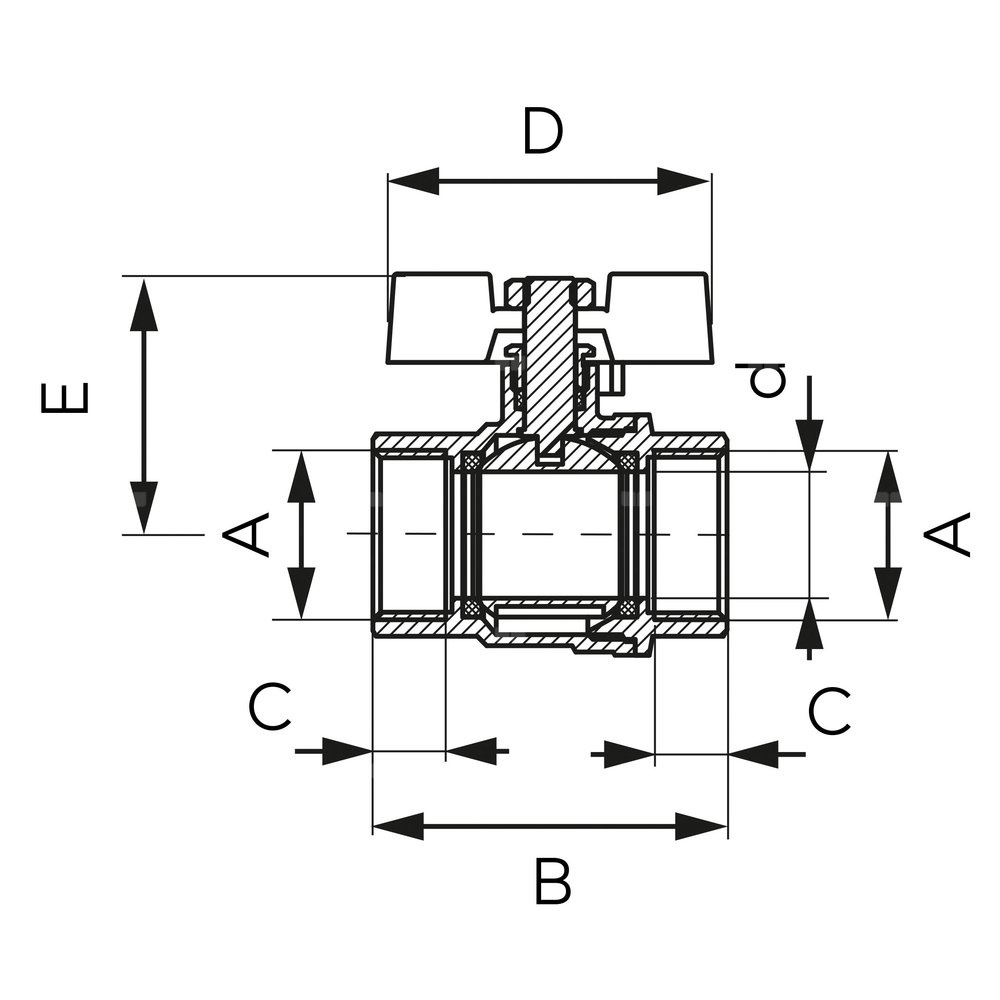 Zawór kulowy FERRO F-POWER 1'' GW, uchwyt: motylek