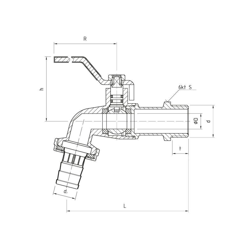 Zawór kulowy PERFEXIM 3102 mosiądz niklowany czerpalny, PN10 1/2'' GZ x przyłącze do węża, uchwyt: dźwignia