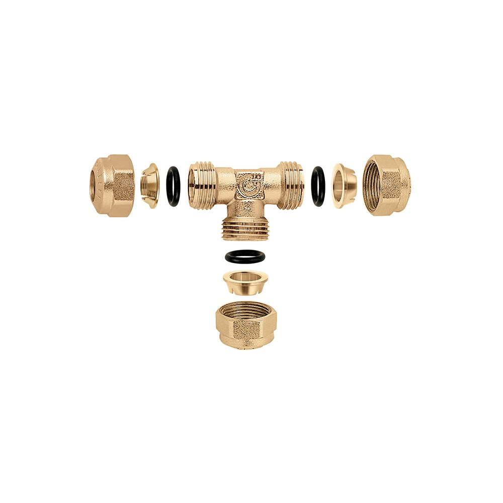 Trójnik. Do rur z miedzi wyżarzonej, miedzi surowej, mosiądzu, stali miękkiej i stali nierdzewnej. Zgodny z EN 1254-2. Do instalacji grzewczych oraz wewnętrznych instalacji wodociągowych: czarny O-ring zgodnie z EN 681.1. Przyłącze: Ø 15. Maksymalne ciśnienie pracy: 16 bar. Zakres temperatury medium: -25–120 °C.