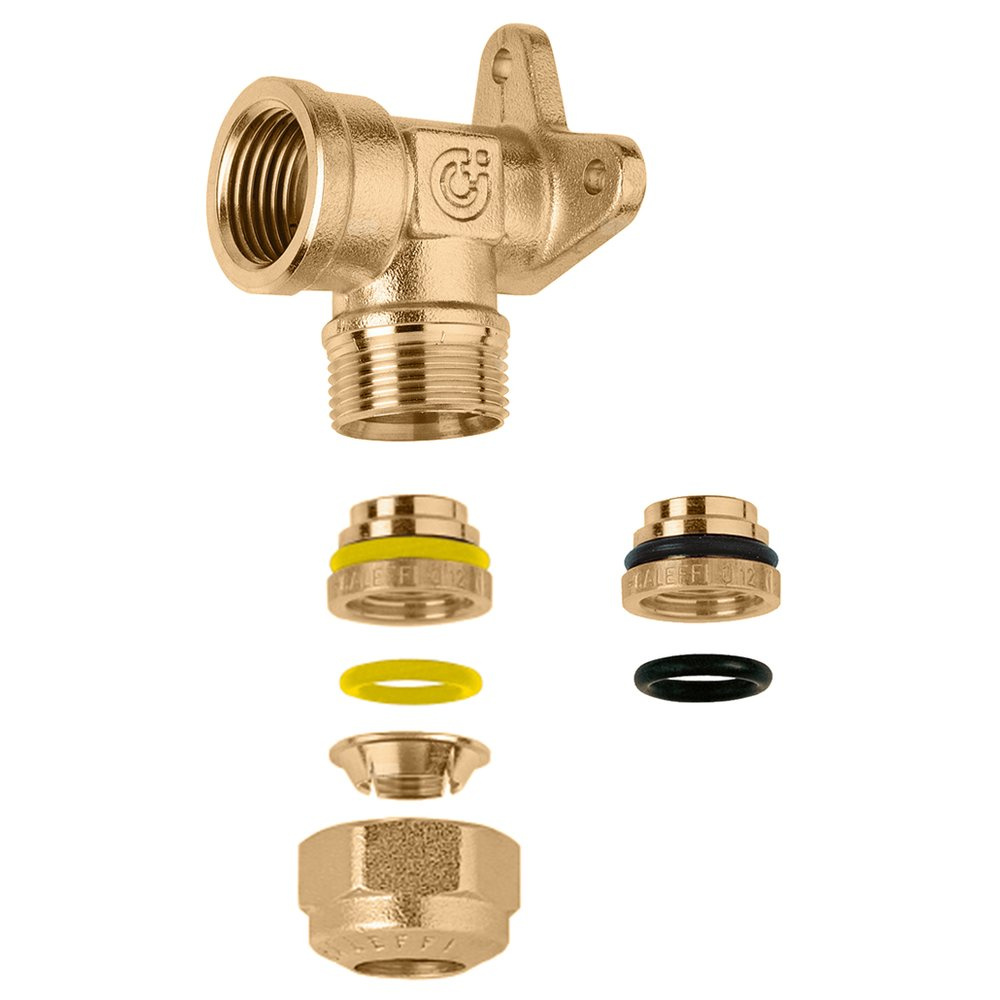 Złączka kolankowa do montażu na ścianie Do rur z miedzi wyżarzonej, miedzi surowej, mosiądzu, stali miękkiej i stali nierdzewnej. Z podwójnym O-ringiem. Zgodne z EN 1254-4. Do gazów i płynnych węglowodorów: żółty O-ring zgodnie z EN 549. Do instalacji grzewczych oraz wewnętrznych instalacji wodociągowych: czarny O-ring zgodnie z EN 681.1. Przyłącze: G 1/2" (ISO 228-1) GW, wlot. Przyłącze: Ø 14, wylot. Maksymalne ciśnienie pracy: 16 bar. Zakres temperatury medium: -25–120 °C.