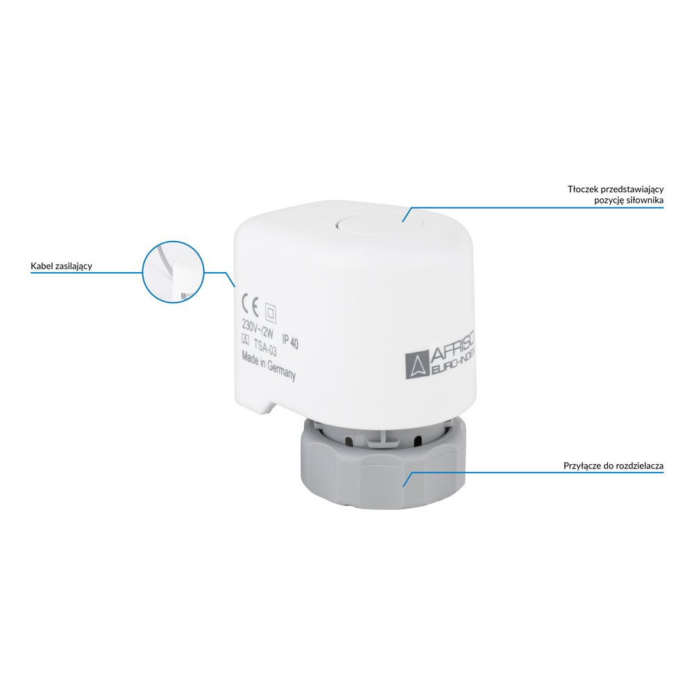 Połączony z listwą systemu sterowania instalacją płaszczyznową (np. FloorControl, CosiTherm) umożliwia ustawienie różnych temperatur w każdej ze stref.