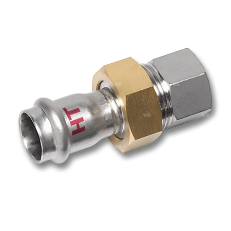 Śrubunek SANHA NiroSan Press Industry z uszczelką i nakrętką z mosiądzu trzyczęściowy, stal nierdzewna, 15 mm x 3/4'' (zw x GW)