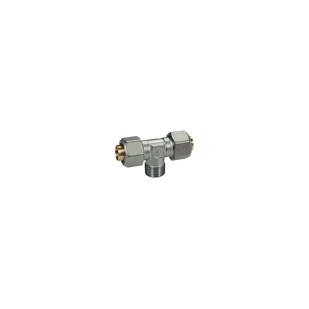 Trójnik GIACOMINI R568AM 90' mosiądz 20x2 x 1/2'' x 20x2 (końcówka wtykowa x GZ x końcówka wtykowa), kolor chrom