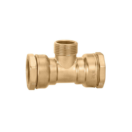 Trójnik redukcyjny z gwintem zewnętrznym-wewnętrznym Do rur polietylenowych. Przyłącze: G 2" A (ISO 228-1) GZ, Ø 63, wlot. Przyłącze: G 1 1/2" (ISO 228-1) GW, wylot. Maksymalne ciśnienie pracy: 16 bar. Zakres temperatury medium: 0–40 °C. Materiał: mosiądz.