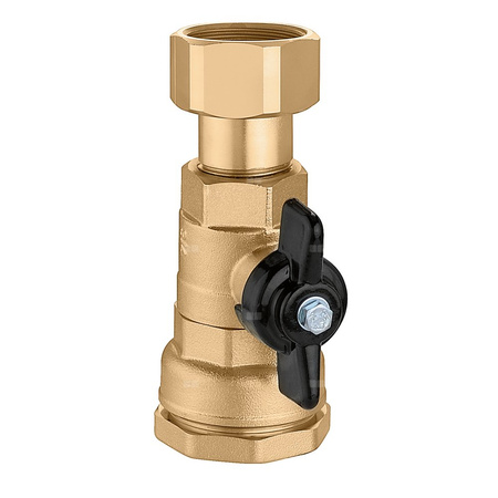 Zawór kulowy ze złączką do rury polietylenowej. przyłącze rozdzielacza : 42 p.2,5 TR, wlot, nakrętka mocująca. podłącznie rury: Ø 32, wylot. Maksymalne ciśnienie pracy: 16 bar. Zakres temperatury medium: -10–40 °C. Zakres temperatury otoczenia: -20–60 °C. Maksymalne stężenie glikolu: 50 %. Medium: woda, Roztwory glikolu, Roztwory soli. Materiał: mosiądz.