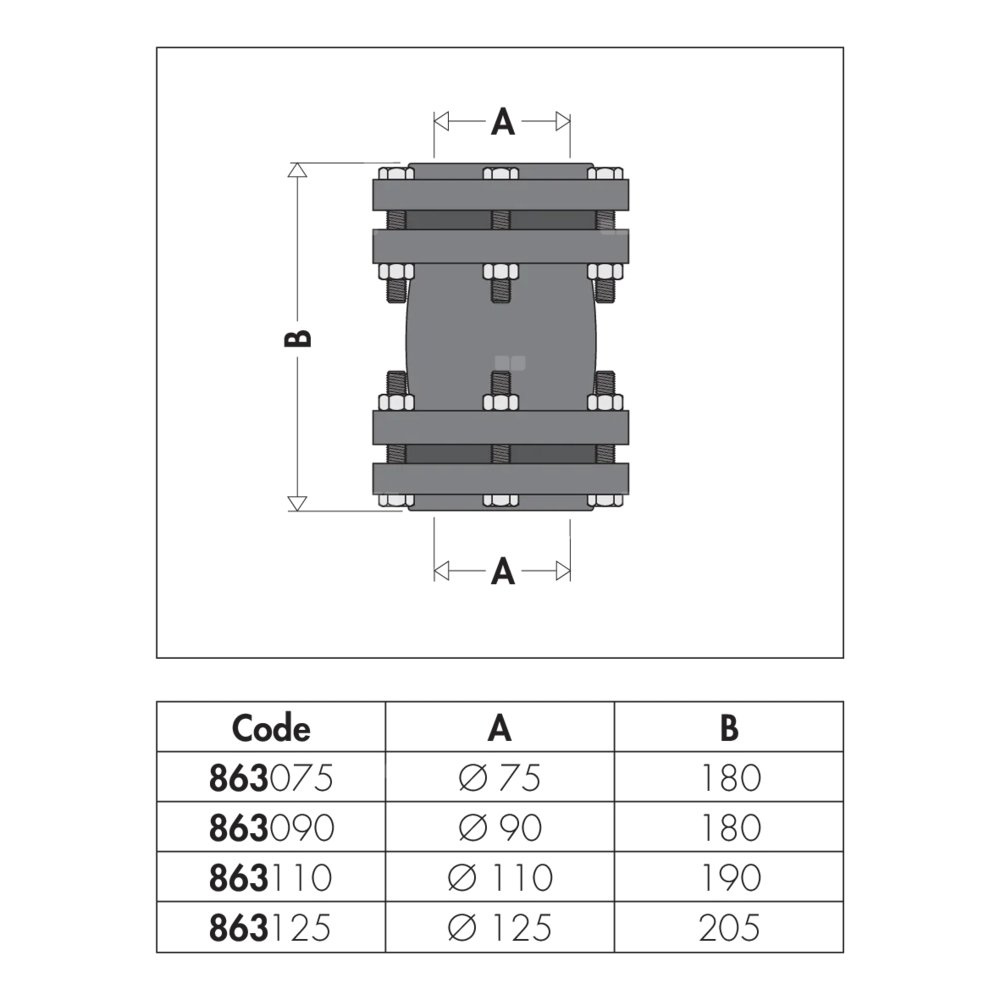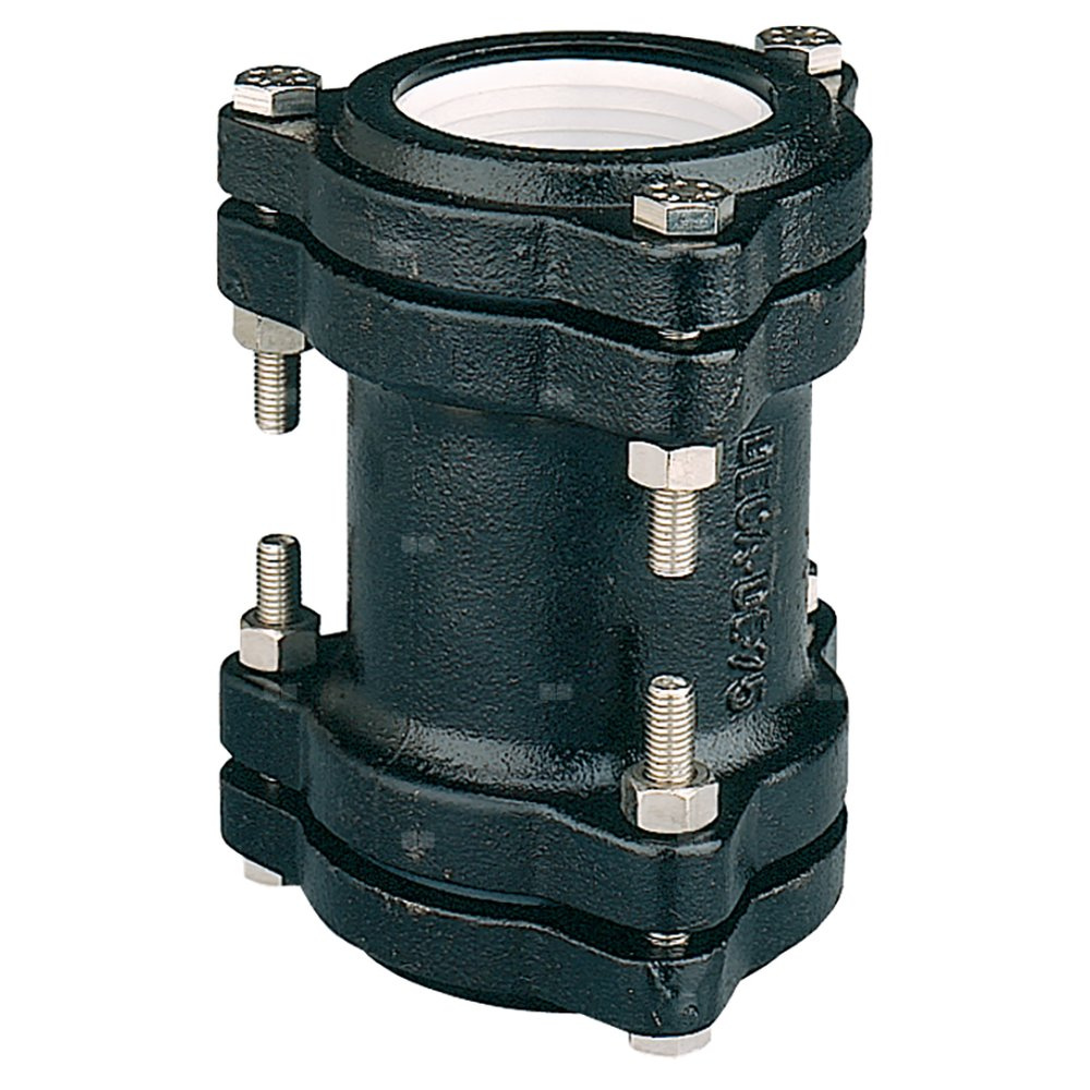 Złączka równoprzelotowa z żeliwa Do rur polietylenowych. Śruby ze stali nierdzewnej. Przyłącze: Ø 110. Maksymalne ciśnienie pracy: 10 bar. Zakres temperatury medium: 0–40 °C. Materiał: żeliwo.