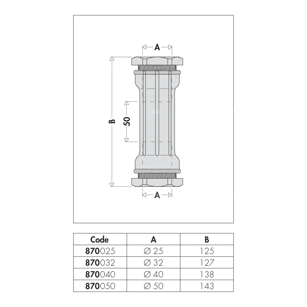 Złączka równoprzelotowa - długa. Może być stosowana do naprawy rur Do rur polietylenowych. Umożliwia naprawę rur o maksymalnej odległości 50 mm między końcówkami rury. Przyłącze: Ø 40. Maksymalne ciśnienie pracy: 16 bar. Zakres temperatury medium: 0–40 °C. Materiał: mosiądz.
