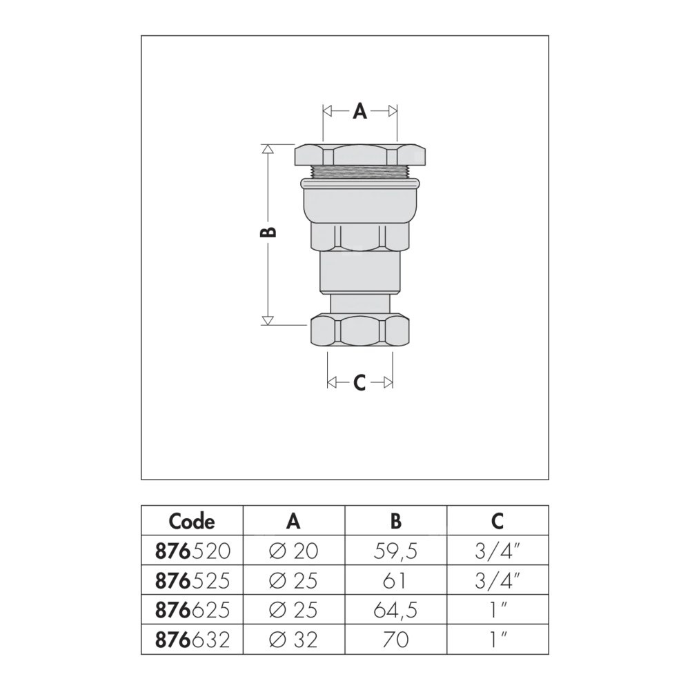 Złączka z gwintem wewnętrznym z nakrętką Do rur polietylenowych. Przyłącze: Ø 25, wlot. Przyłącze: Rp 3/4" (EN 10226-1) GW, wylot, złączka. Maksymalne ciśnienie pracy: 16 bar. Zakres temperatury medium: 0–40 °C. Materiał: mosiądz.