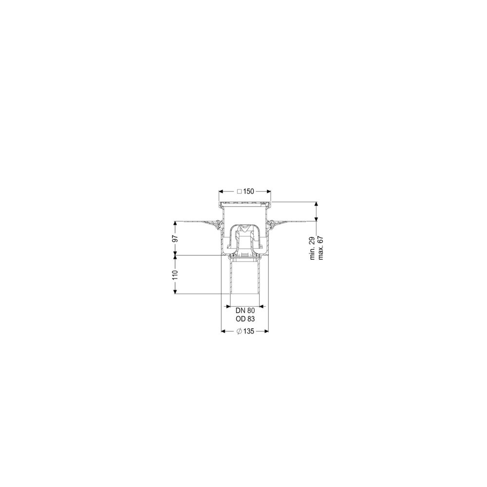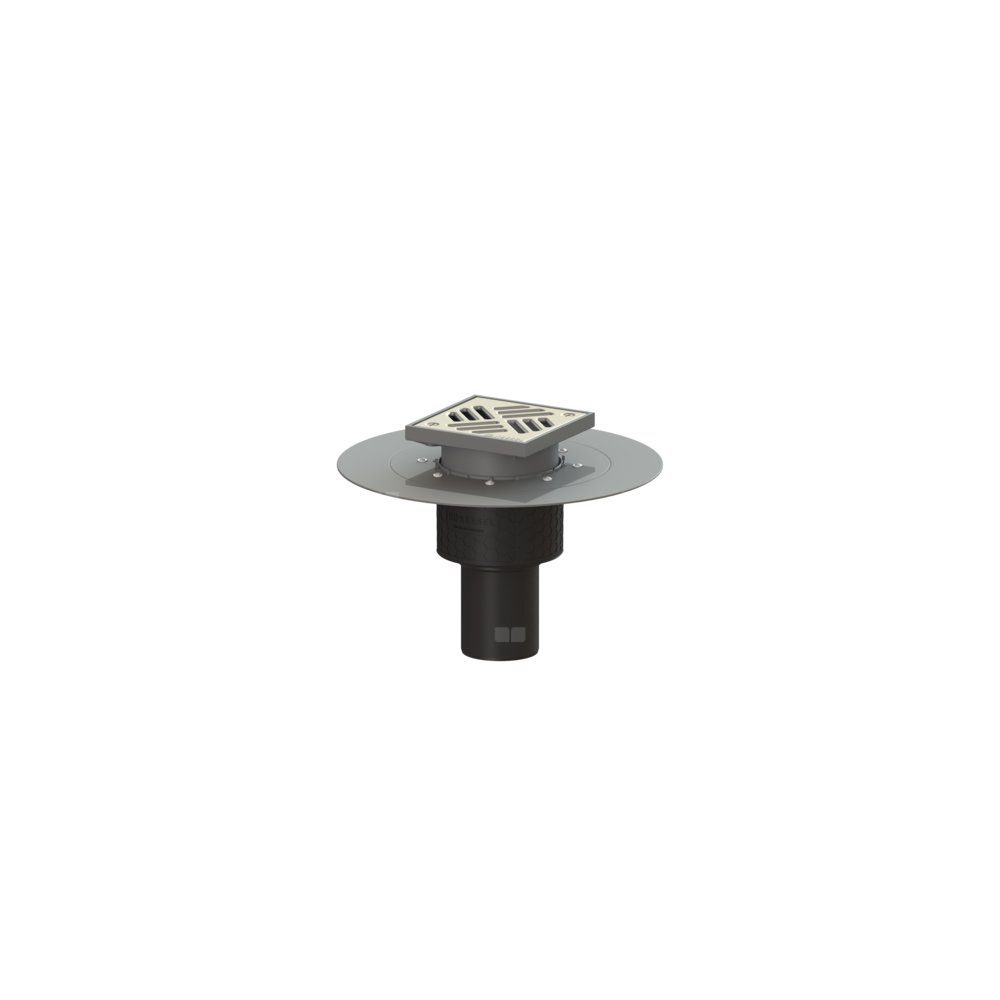 KESSEL Wpust obiektowy Ecoguss kołnier., wielkość nominalna (DN) 80, króciec pionowy, odwodnienie przez odpływ punktowy, syfonem w zestawie, maks. wys. posadzki 25 mm, typ pokrywy Kratka szczelinowa, z regulowaną wysokością