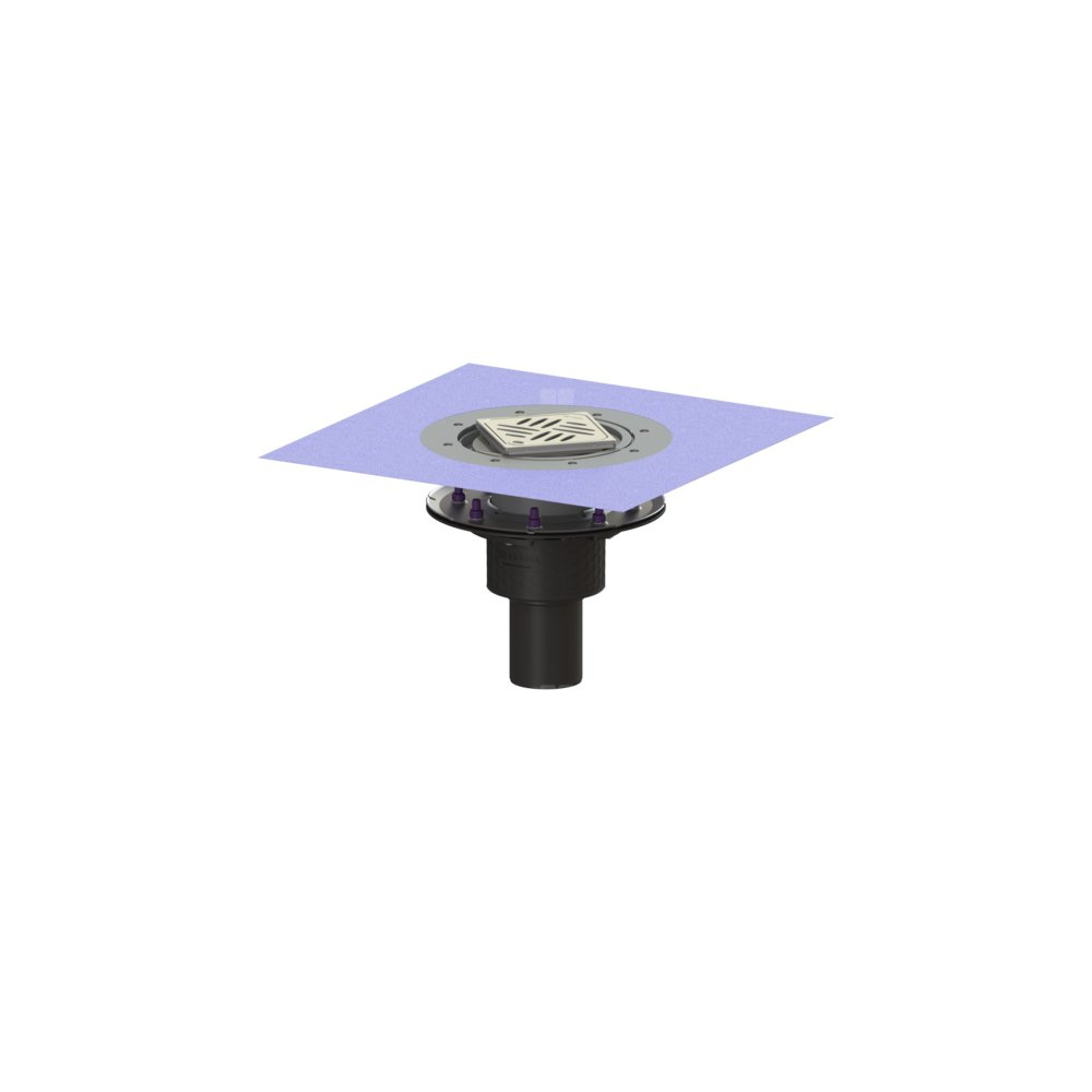 KESSEL Wpust obiek. Ecoguss doc.koł.usz., wielkość nominalna (DN) 80, dł. pokrywy 120 mm, króciec pionowy, syfonem w zestawie, odwodnienie przez odpływ punktowy, maks. wys. posadzki 24 mm, typ pokrywy Kratka design, regulowany w trzech wymiarach