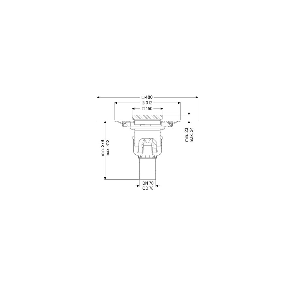 KESSEL Wpust podłogowy/stropowy Ferrofix, System 125, wielkość nominalna (DN) 70, typ pokrywy Ruszt kratowy, dł. pokrywy 138 mm, króciec pionowy, regulowany w trzech wymiarach, wymiar zewnętrzny (DZ) 78 mm, pojemność 66,7 dm³