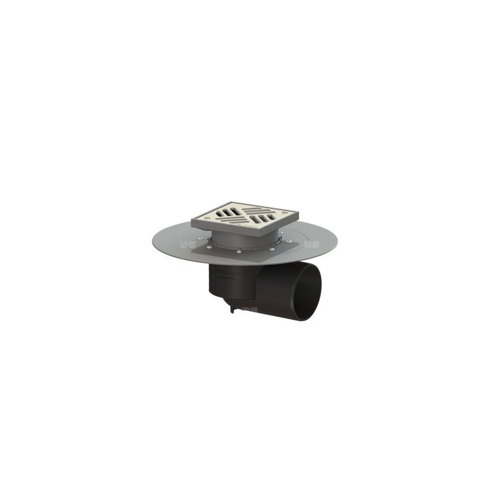 KESSEL Wpust obiektowy Ecoguss kołnier., wielkość nominalna (DN) 100, króciec boczny, odwodnienie przez odpływ punktowy, syfonem w zestawie, maks. wys. posadzki 25 mm, typ pokrywy Kratka szczelinowa, z regulowaną wysokością