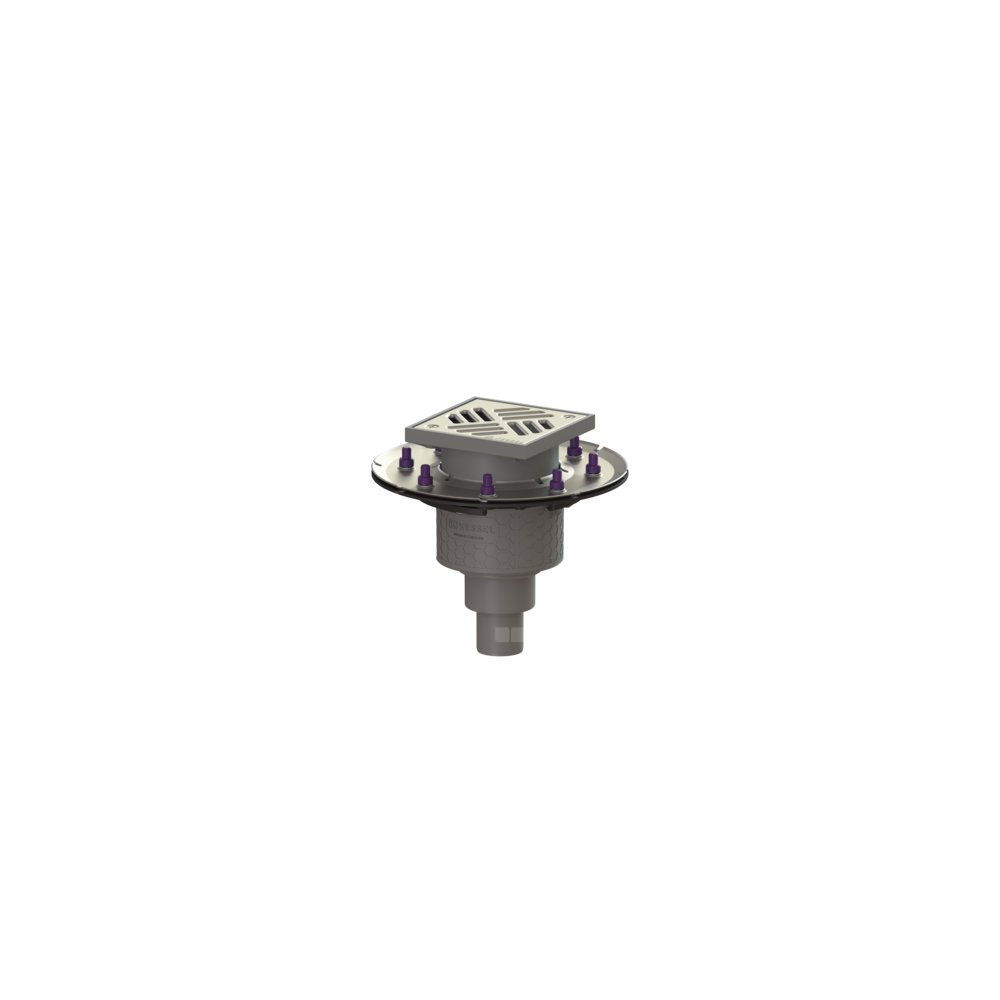 Wpust podłogowy/stropowy Practicus z tworzywa sztucznego służy do odwodnienia punktowego i jest wyposażony w dociskowy kołnierz uszczelniający oraz wyjmowany syfon, uszczelkę wargową i pokrywę ochronną na czas fazy budowlanej. Z nasadą z ABS z teleskopową regulacją wysokości. Wpust spełnia szczególne wymagania w zakresie izolacyjności akustycznej zgodnie z pomiarami Instytutu Frauenhofera w Stuttgarcie. Dociskowy kołnierz uszczelniający z bolcami i śrubami ze stali nierdzewnej służy do dociskania lub zgrzewania taśm bitumicznych i polimerowo-bitumicznych oraz taśm uszczelniających z tworzywa sztucznego i elastomerów. Do uszczelnień wodoszczelnych mogą być stosowane tylko sprawdzone przez producenta membrany hydroizolacyjne.