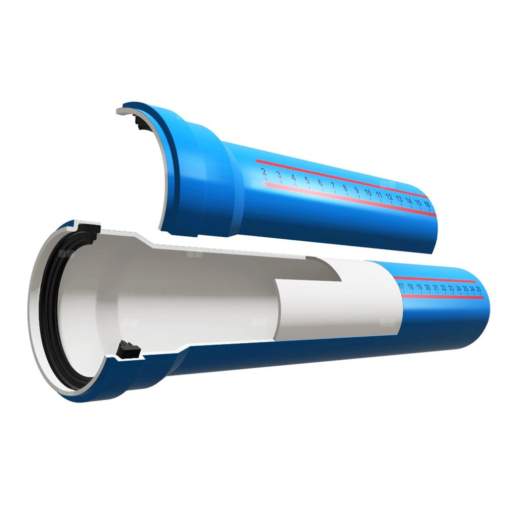 Kanalizacja wewnętrzna niskoszumowa Ultra dB to kompletny system rur i kształtek, produkowanych na bazie polipropylenu z dodatkiem składników mineralnych. Rury charakteryzują się warstwową konstrukcją ścianki: wewnętrzną w kolorze białym, zewnętrzną - niebieską, gładką, odporną na zabrudzenia, z trwałym nadrukiem skali centymetrowej. Gładka powierzchnia wewnętrzna w białym kolorze ułatwia inspekcję.
