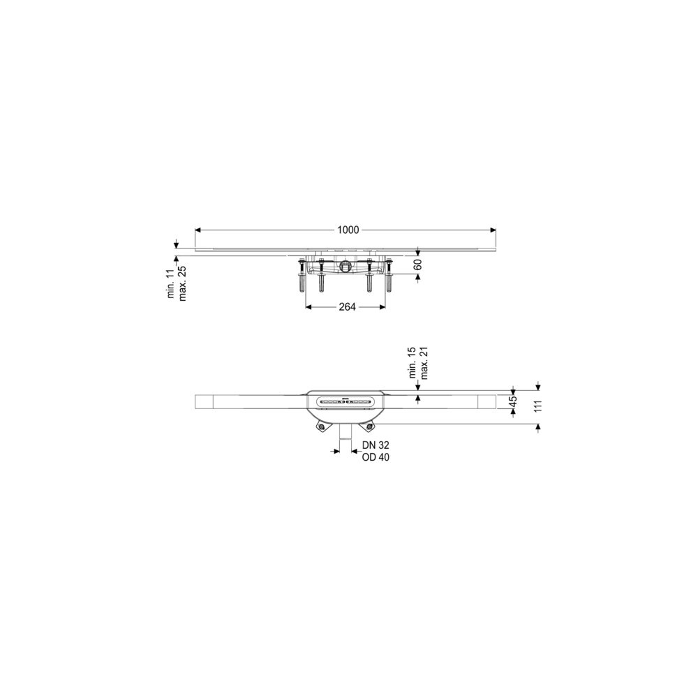 KESSEL Odpływ linio.Linearis Infinity 60, dł. pokrywy 1000 mm, odpływ DN 40 mm, powierzchnia Black powierzchnia szczotkowana, typ pokrywy pokrywa ze stali nierdzewnej, syfonem Megastop