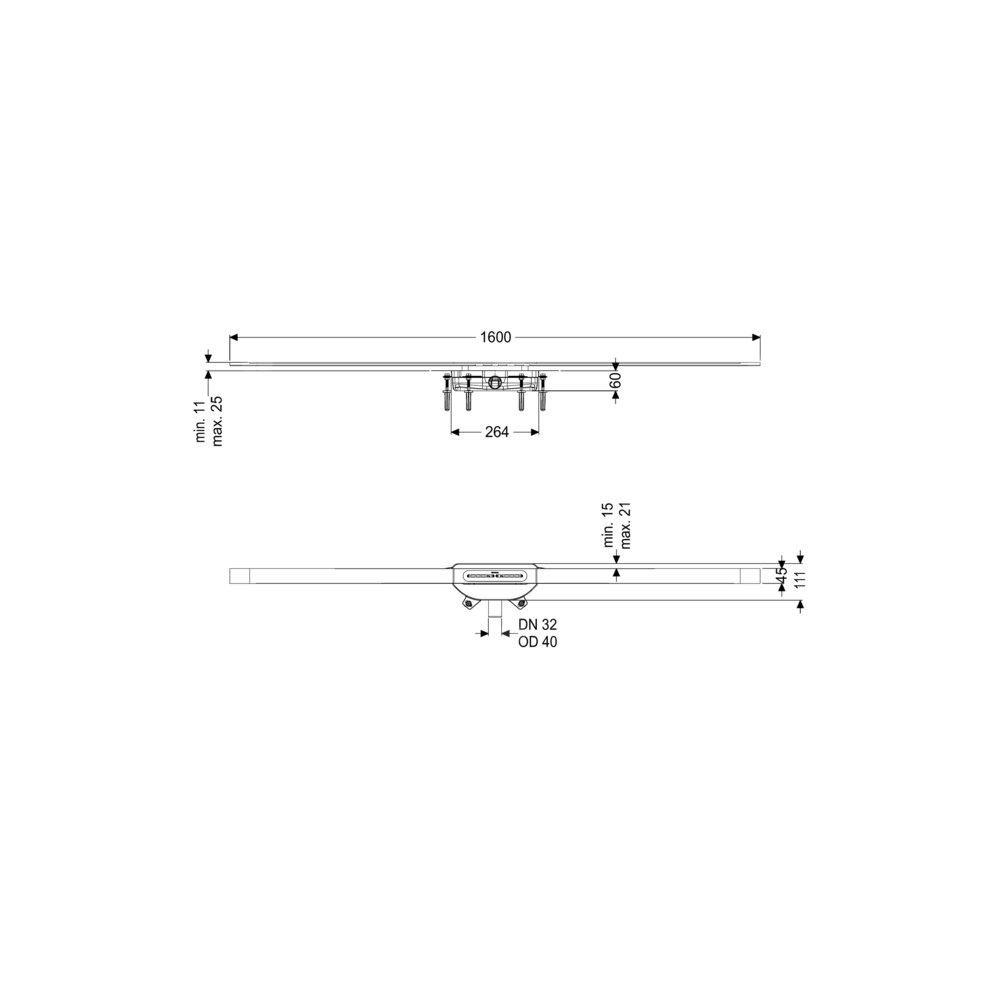 Odpływ linio.Linearis Infinity 60 dł.: 1600mm, DN40,Stal nier.,szcz.,Mega.