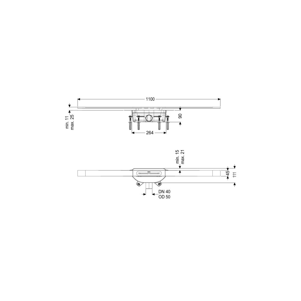 KESSEL Odpływ linio.Linearis Infinity 90, dł. pokrywy 1100 mm, odpływ DN 50 mm, powierzchnia Black powierzchnia szczotkowana, typ pokrywy pokrywa ze stali nierdzewnej, syfonem z zamknięciem wodnym 50 mm