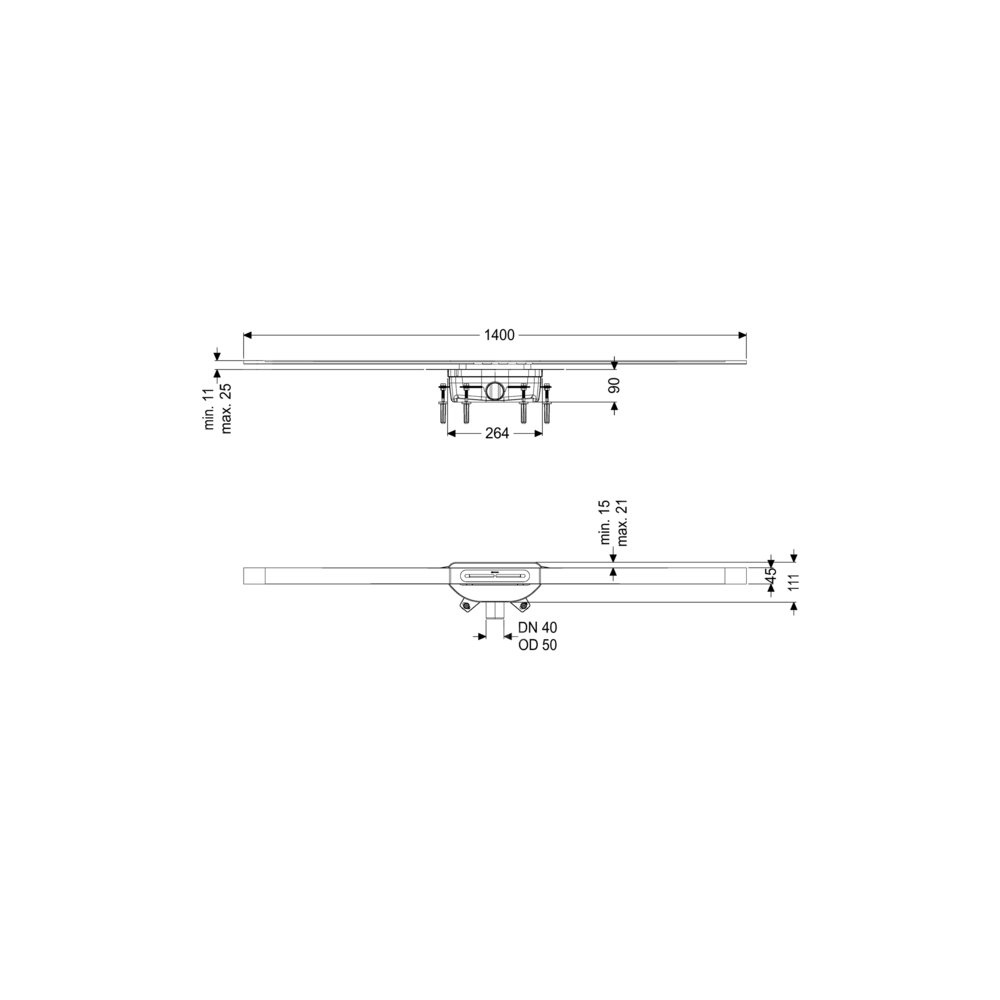 KESSEL Odpływ linio.Linearis Infinity 90, dł. pokrywy 1400 mm, odpływ DN 50 mm, powierzchnia Stal nierdzewna, powierzchnia szczotkowana, typ pokrywy pokrywa ze stali nierdzewnej, syfonem z zamknięciem wodnym 50 mm