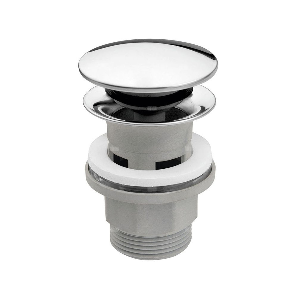 Trwały, chromowany korek wykonany z tworzywa, przeznaczony do umywalek z przelewem.
