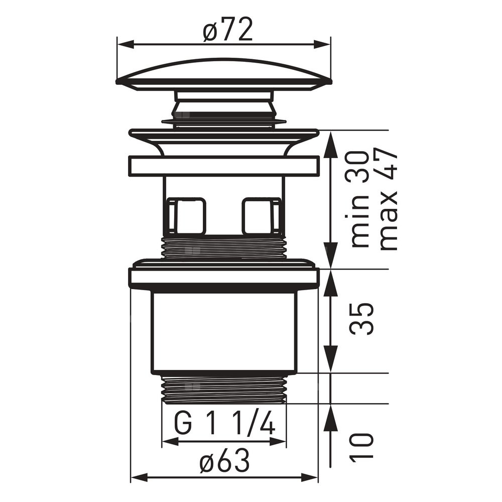Ceramiczny korek, trwały korpus wykonany z tworzywa, przeznaczony do umywalek z przelewem.