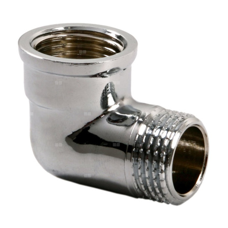 Kolano nakrętno-wkrętne wykonane z wysokogatunkowego mosiadzu CW617N. Powierzchnia chromowana. Maksymalna temperatura pracy 95°C maksymalne ciśnienie pracy 10 bar