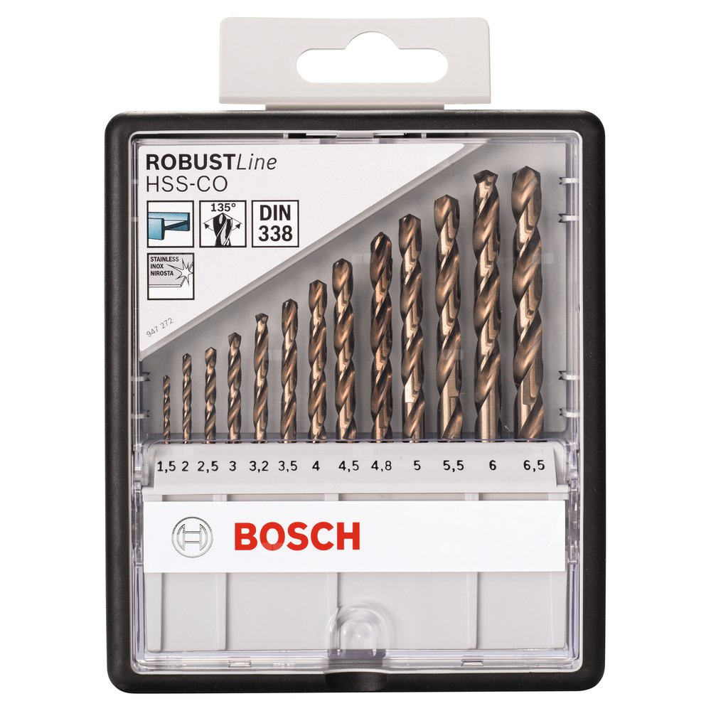 13-częściowy zestaw wierteł do metalu Robust Line HSS-Co, DIN 338, 135°