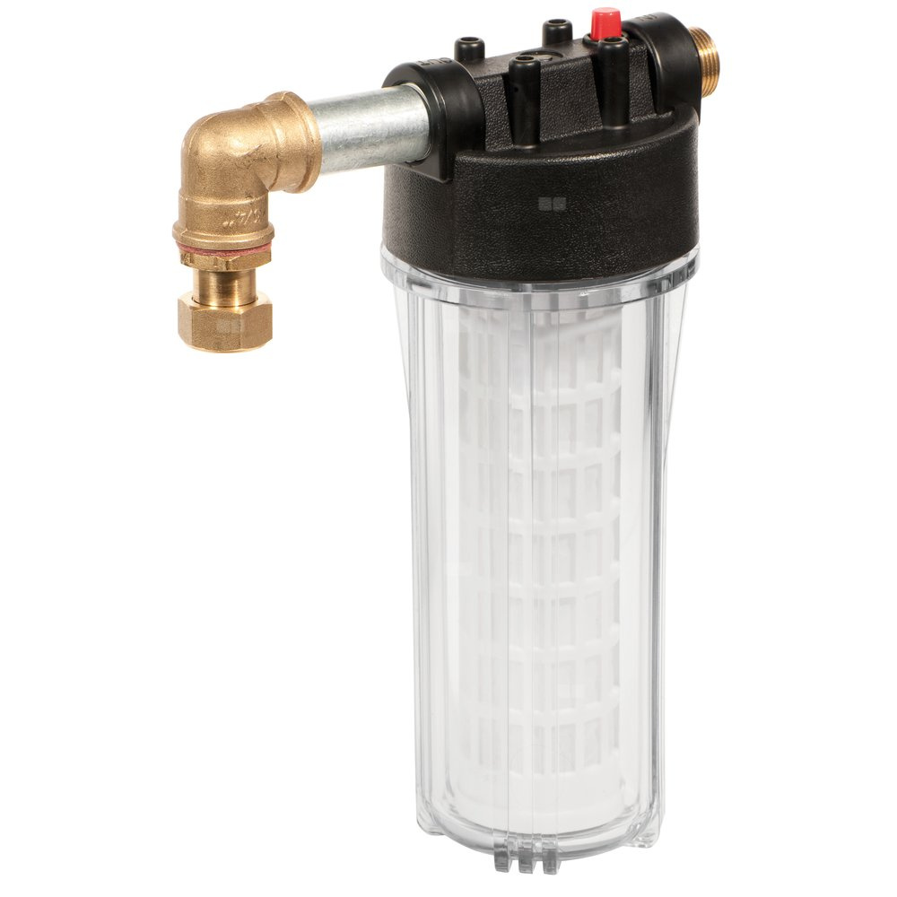 Filtr dokładny z wkładem 90mm, nadaje się do mycia, z dużym pojemnikiem na zanieczyszczenia, dla przewodu powrotnego z przyłączem 3/4", do płukania ogrzewania podłogowego/ściennego i usuwania zamuleń.