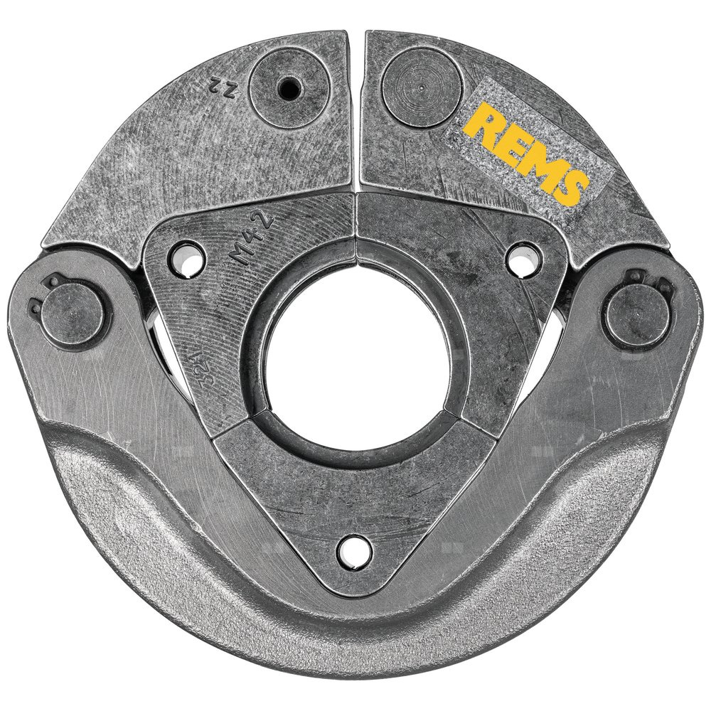 REMS Pierścień zaciskowy (PR-3S) z 3 segmentami dociskowymi, 2 prowadzone obrotowo, do wymagającego zaciskania przy dużych gabarytach. Optymalne zaciskanie poprzez promieniowo sterowany ruch segmentów zaciskowych.
