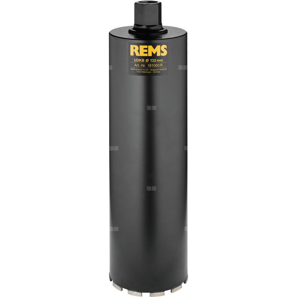 Uniwersalna diamentowa korona rdzeniowa REMS. Lutowane indukcyjnie, regenerowalne. Uniwersalne zastosowanie do wiercenia suchego lub mokrego, z ręki lub przy pomocy stojaka. Do wielu materiałów, np. betonu, żelbetu, muru wszelkiego rodzaju, kamienia naturalnego, asfaltu, jastrychu wszelkiego rodzaju. Złącze gwintowane wewnętrznie UNC 1¼". Głębokość wiercenia 420 mm. W kartonie.