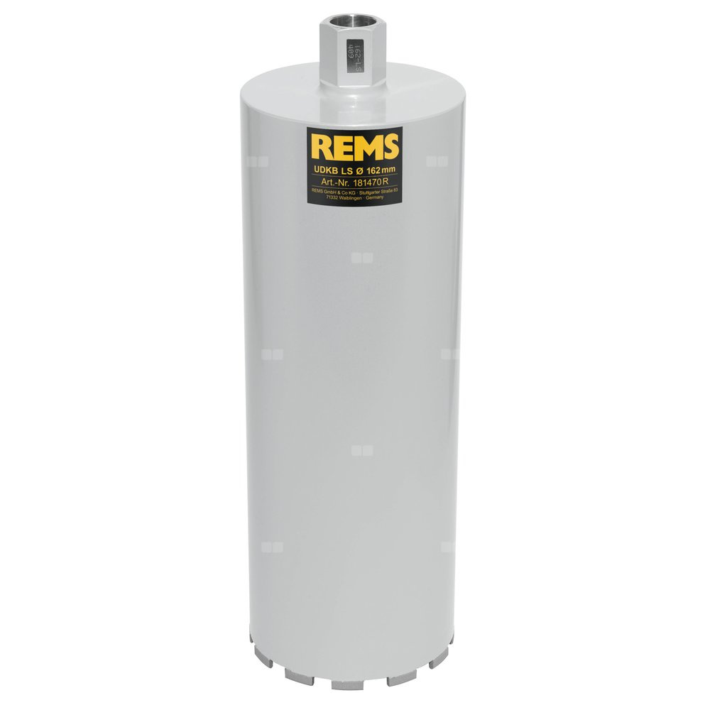 Uniwersalna diamentowa korona rdzeniowa REMS. Spawane laserowo, odporne na wysokie temperatury. Uniwersalne zastosowanie do wiercenia suchego lub mokrego, z ręki lub przy pomocy stojaka. Do wielu materiałów, np. betonu, żelbetu, muru wszelkiego rodzaju, kamienia naturalnego, asfaltu, jastrychu wszelkiego rodzaju. Złącze gwintowane wewnętrznie UNC 1¼". Głębokość wiercenia 420 mm. W kartonie.