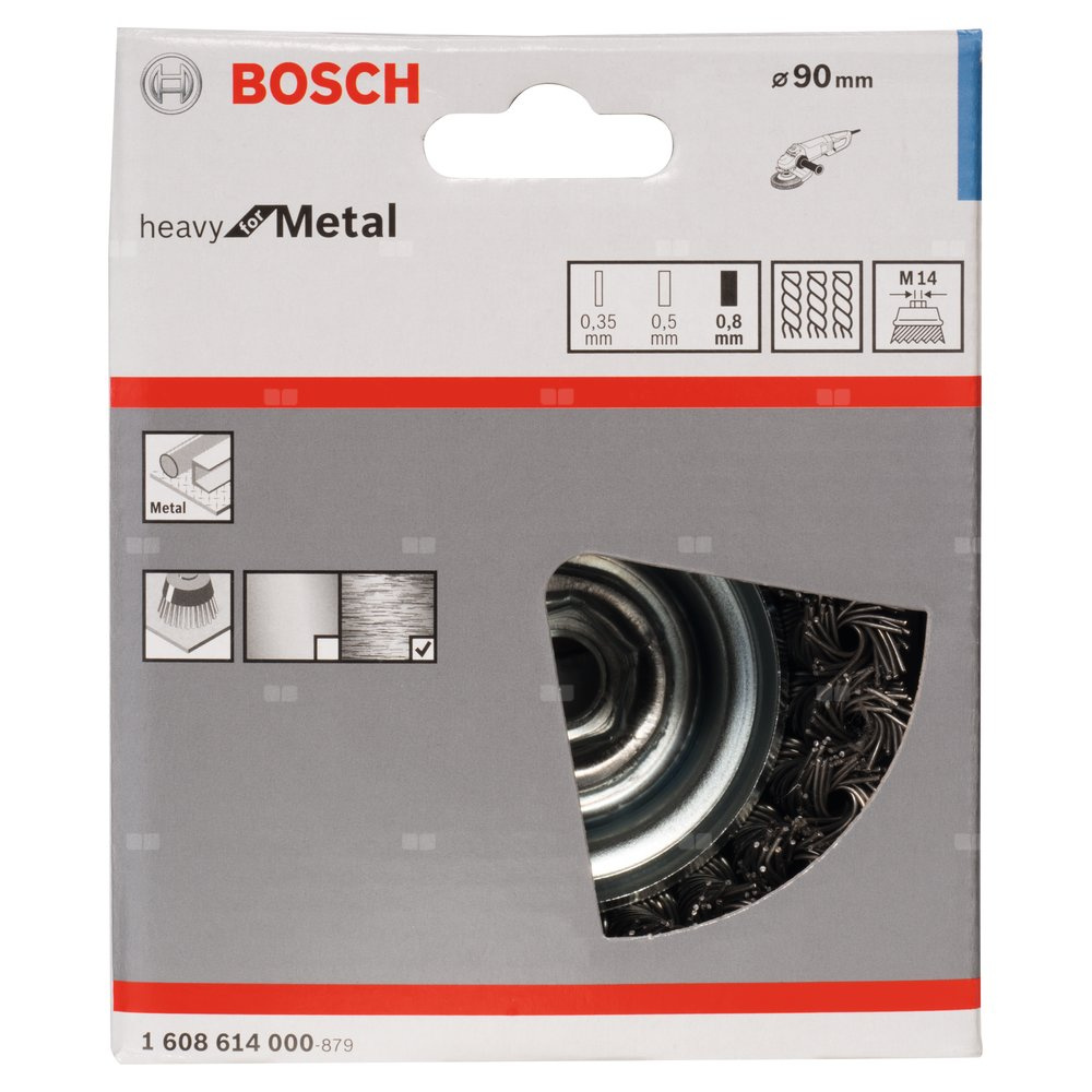 | Tekst produktu, osprzęt szary | Szczotka druciana garnkowa, drut pleciony Odpowiednia do wysokowydajnego czyszczenia od średnich do dużych powierzchni metalowych, np. usuwania silnej korozji, powłok antykorozyjnych, farb i lakierów. Odpowiednia do wszystkich szlifierek kątowych z gwintem M14 i szlifierek GGS 6 S Professional |