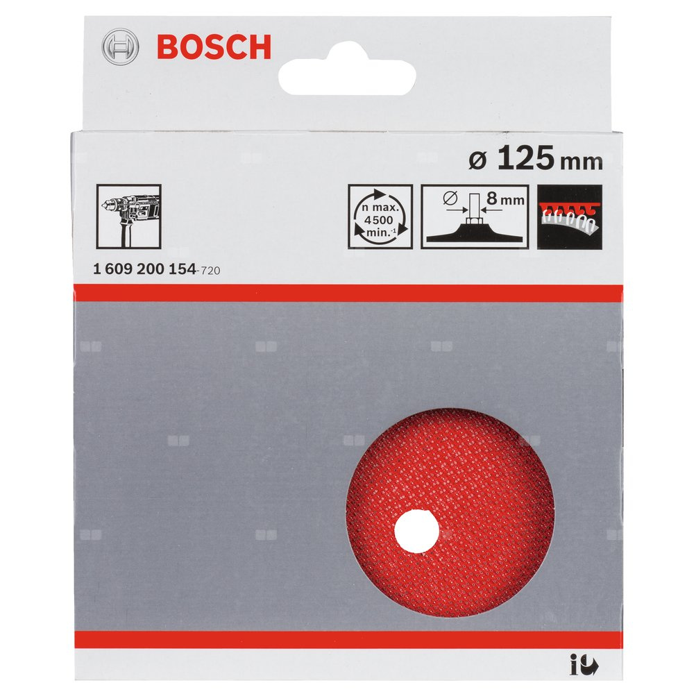 Tekst produktu, osprzęt szary Talerz szlifierski z mocowaniem na rzepy, do papierów ściernych Ø 125 mm z systemem mocowania na rzepy