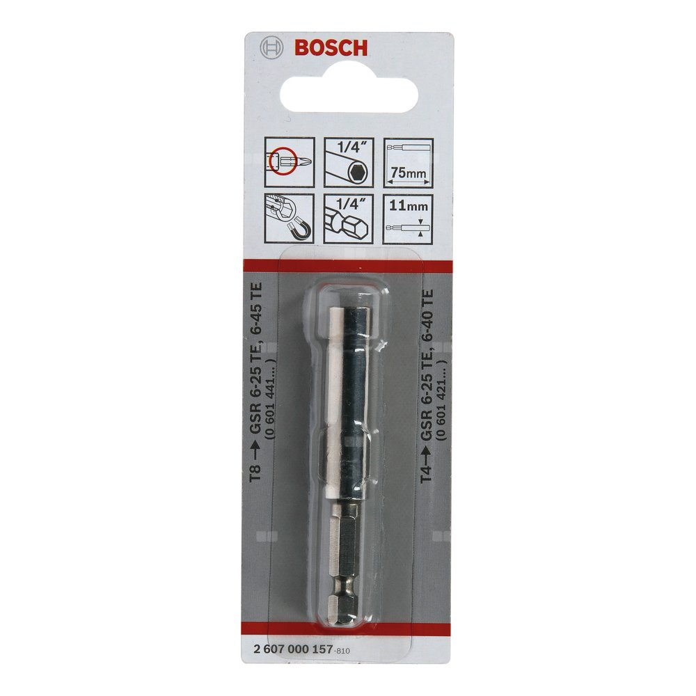 | Tekst produktu, osprzęt szary | Uchwyty uniwersalne z magnesem trwałym i pierścieniem rozprężnym Z ogranicznikami głębokości T8 (2 607 002 585) lub T4 (2 607 000 156) do końcówek wkręcających z chwytem zewnętrznym sześciokątnym 1/4", zgodnym z ISO 1173 C6.3 |