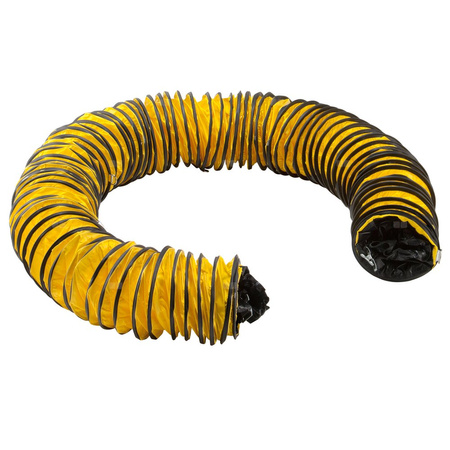 Przewód powietrza odlotowego i zasysanego, Ø 200 mm, o długości 10 m , np. do zasysania powietrza z pomieszczeń, przestrzeni pośrednich, szybów, pustek, do odprowadzania zasysanego powietrza lub pyłów na zewnątrz oraz do napełniania np. zamków dmuchanych, balonów na ogrzane powietrze. Do REMS Orkan 1360.