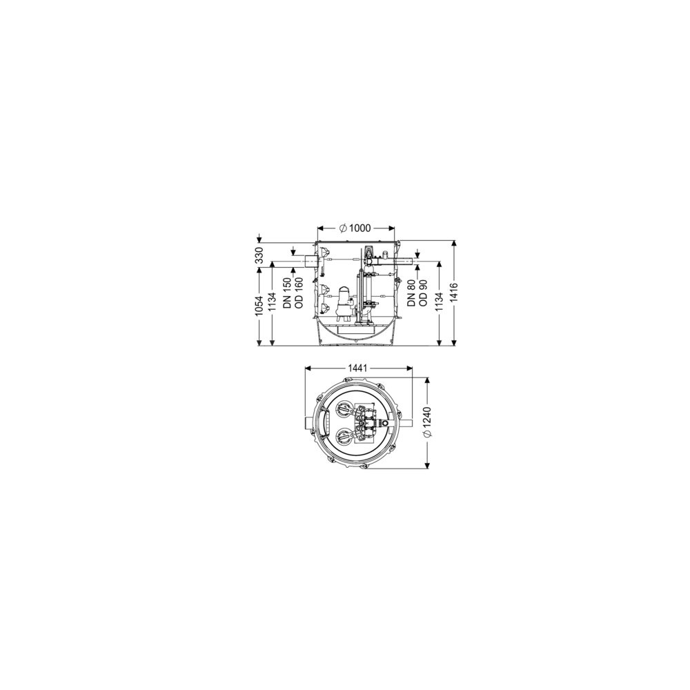 KESSEL Przepompownia Aquapump XL, Duo, ścieków Ścieki zawierające fekalia lub bez fekaliów (w sposób zabudowy bez wymagań ATEX), zabudowa w ziemi, sterowanie pompą przez sterownik, z 2 GTF 1600 pomp zatapialnych, typ pracy S1, rozpoznawania poziomu hydrostatyczny