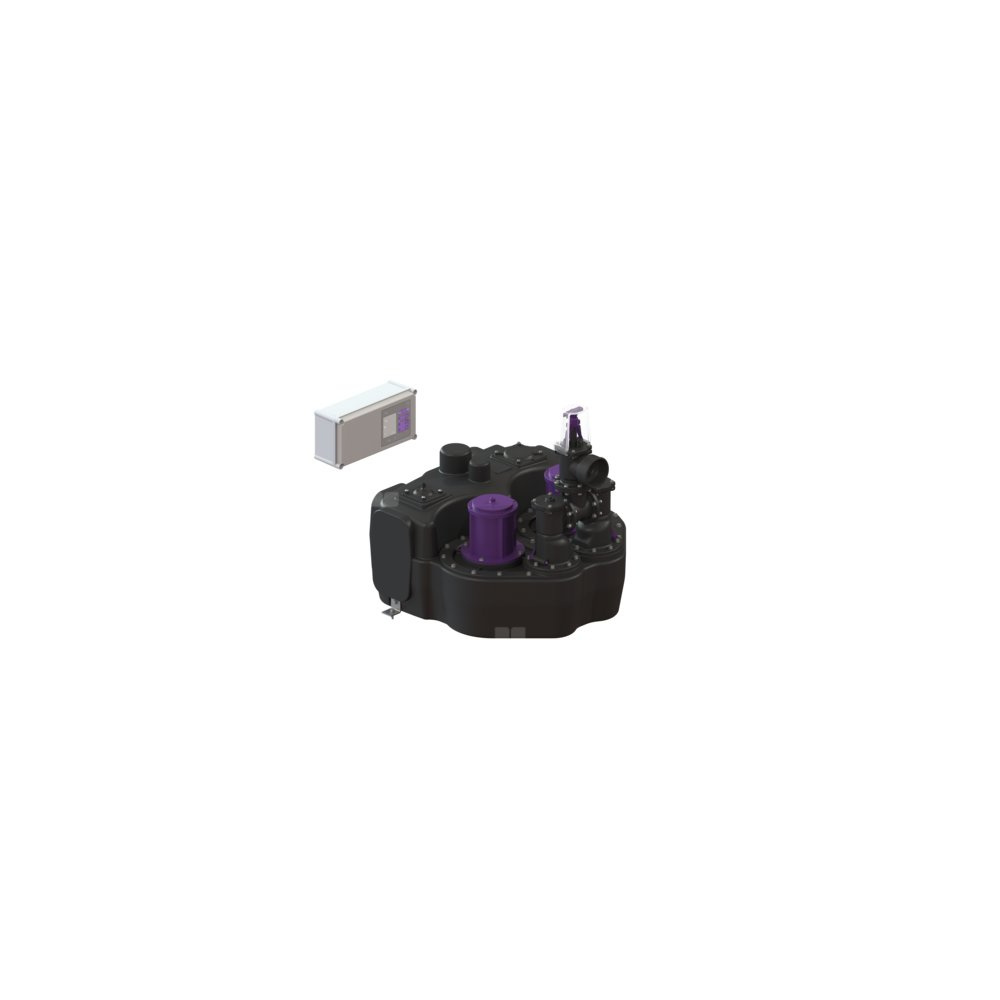 Przepompownia do ścieków zawierających fekalia i bez fekaliów jest wyposażona w dwie pompy zatapialne oraz zawór zwrotny. Pojemnik zbiorczy wykonany z wytrzymałego tworzywa sztucznego (PE) oferuje uniwersalne możliwości podłączenia i posiada przykręcany otwór wyczystkowy.