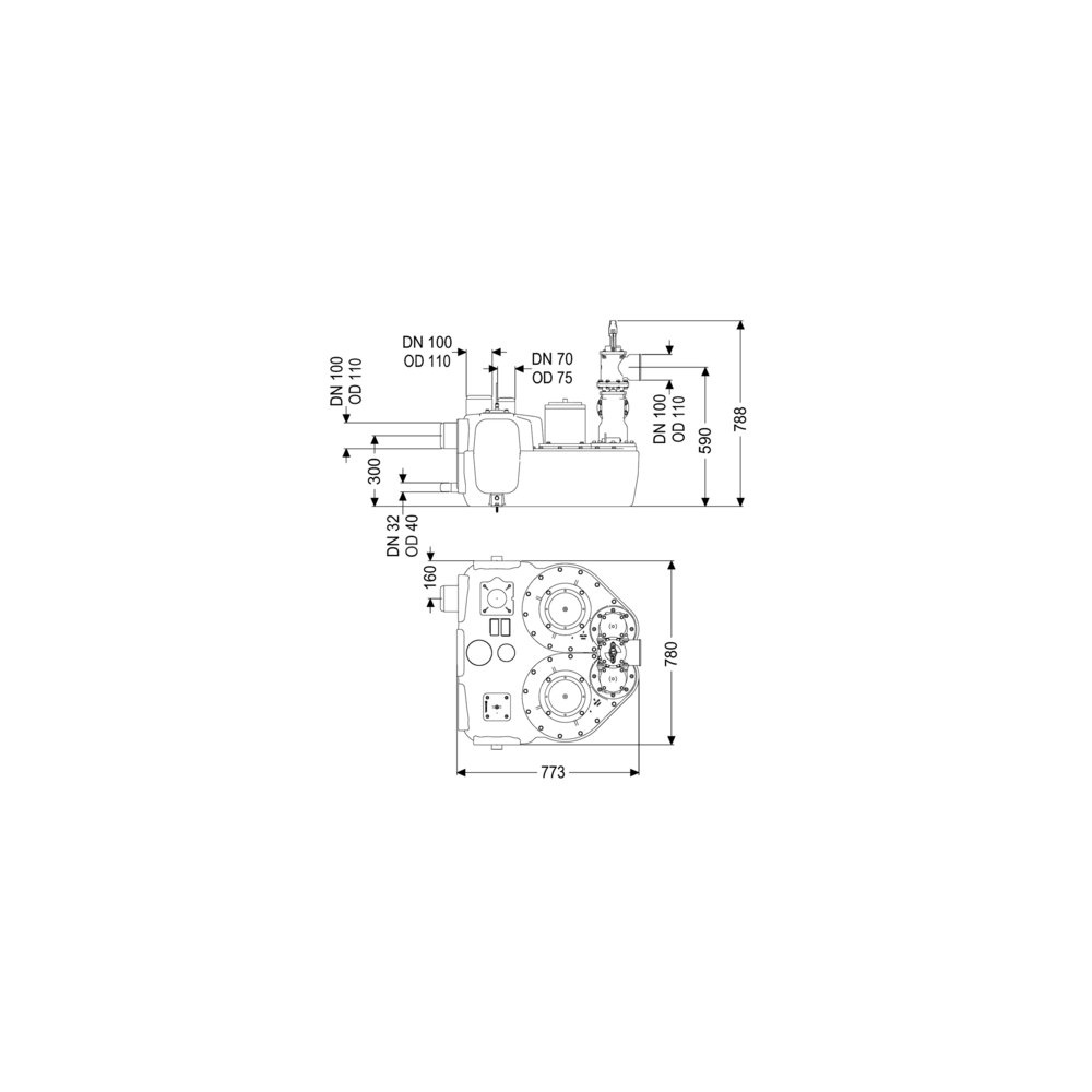 - Przewód tłoczny (DN): 100