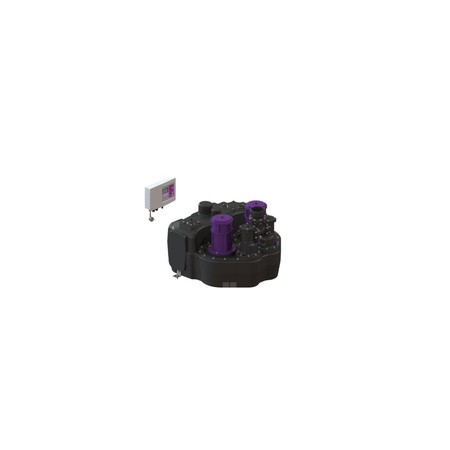 Przepompownia do ścieków zawierających fekalia i bez fekaliów jest wyposażona w dwie pompy zatapialne oraz zawór zwrotny. Pojemnik zbiorczy wykonany z wytrzymałego tworzywa sztucznego (PE) oferuje uniwersalne możliwości podłączenia i posiada przykręcany otwór wyczystkowy.