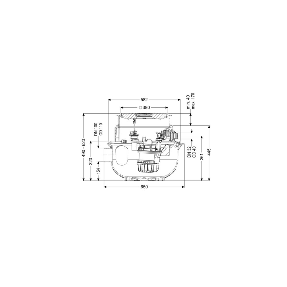 KESSEL Przepompownia Aqualift S Compact Tronic, ścieków Ścieki bez fekaliów, zabudowa w płycie podłogowej, z pompą zatapialną GTF 1200 resistant, rozpoznawania poziomu Rura zanurzeniowa, typ pokrywy pokrywa, czarny