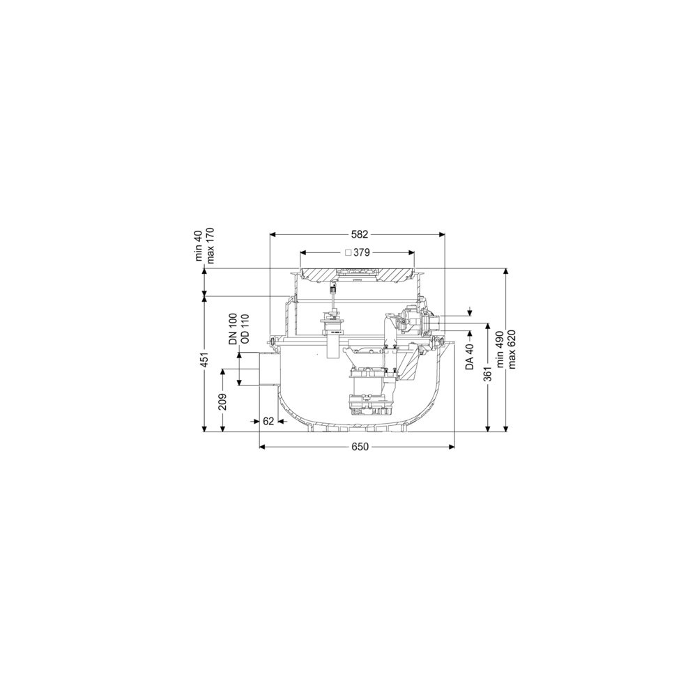 KESSEL Przepompownia Aqualift S Compact Tronic, ścieków Ścieki bez fekaliów, zabudowa w płycie podłogowej, z pompą zatapialną GTF 500 resistant, rozpoznawania poziomu Rura zanurzeniowa, typ pokrywy pokrywa z rusztem szczelinowym, czarny