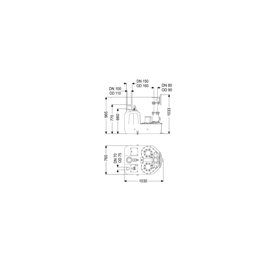 Przepompownia do ścieków zawierających fekalia i bez fekaliów jjest wyposażony w jedną lub dwie pompy zatapialną oraz zawór zwrotny. Pojemnik zbiorczy wykonany z wytrzymałego tworzywa sztucznego (PE) oferuje uniwersalne możliwości podłączenia i posiada przykręcany otwór wyczystkowy.
