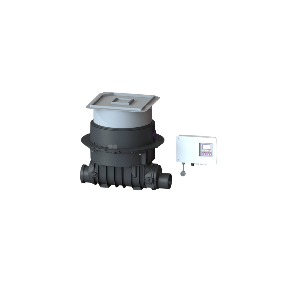W normalnym stanie przekrój rury jest otwarty. W przypadku przepływu zwrotnego system zamykania za pomocą silnika zostaje automatycznie zamknięty. Odprowadzanie w trakcie fazy przepływu zwrotnego odbywa się przez pompę ze zintegrowanym mechanizmem rozdrabniającym.