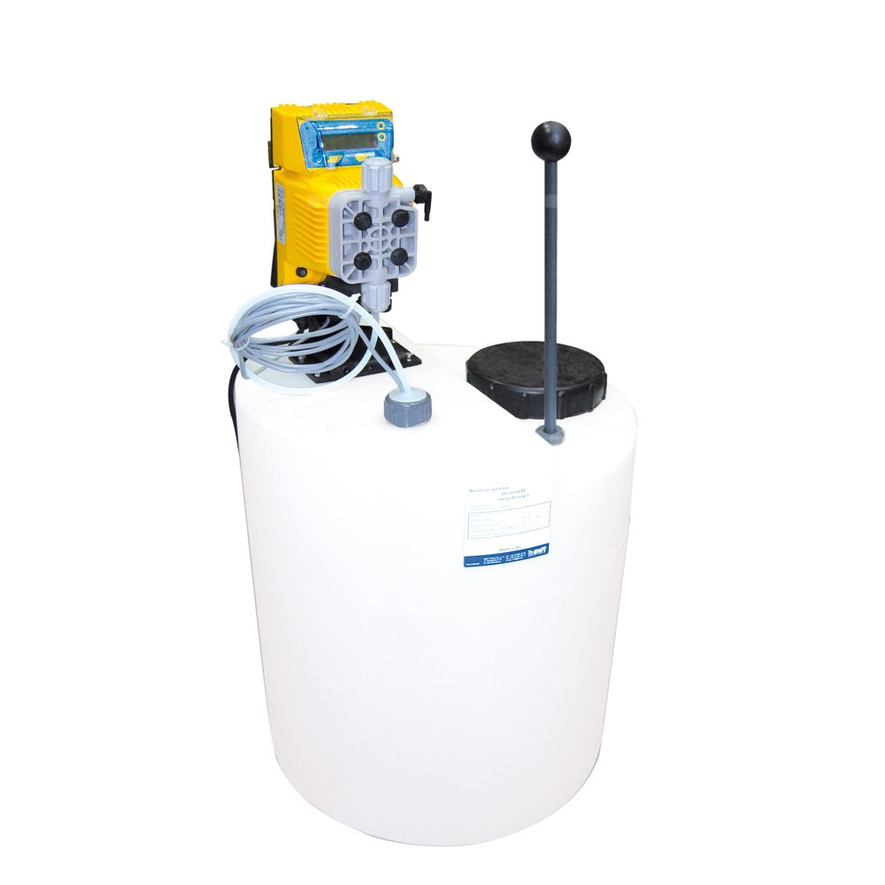 i wytłoczoną podziałką w litrach, przewód ssawny, 2-metrowy przewód dozujący, mieszadło ręczne, lanca ssąca, inżektor. Posiada atest PZH.